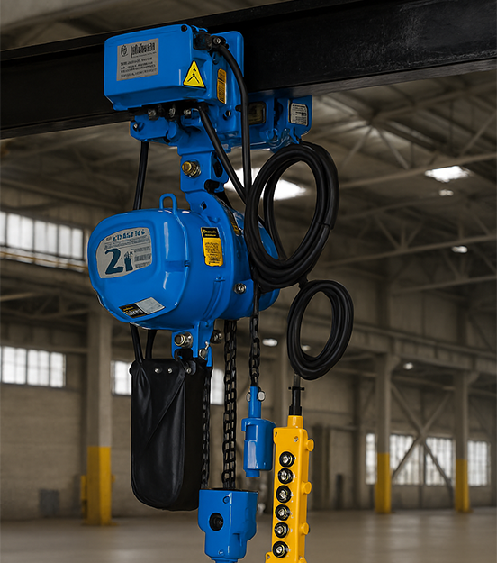 Kanext electric chain hoists are designed in modular construction for easy maintenance. The special features, like low headroom, spur gears running on antifriction ball bearings with oil bath lubrication, motors conforming to IS/BS/DIN, etc., make Kanext chain hoists unbeatable for their price. Kanext chain hoists are available in hook suspension type, push-pull trolley type, hand-geared trolley type, power travel trolley type, and flexible trolley type to negotiate small radius.